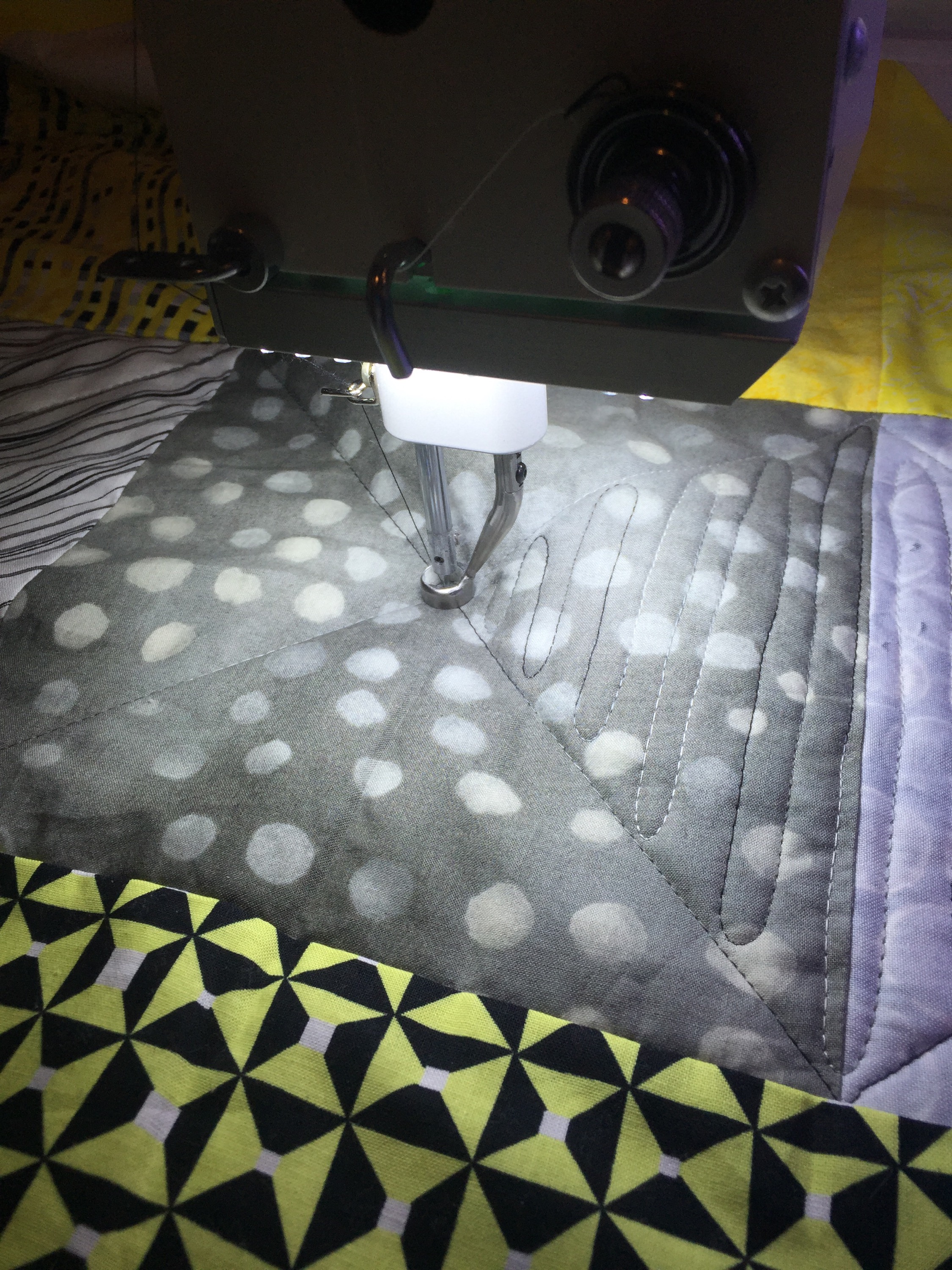 I can’t thank Karen McTavish enough for showing me this ruler. I use this on my sit down APQS George machine for straight line ruler work and it’s honestly the best I have ever used. There is a (washable!!) sticky back to this ruler that makes it grip like no ruler or sticky tapes I have ever used. It leaves no residue, there is no gummy build up, and when it starts to be less “tacky” from lint/fiber buildup you just spritz it with your favorite multi-surface cleaner to loosen the lint, then rinse with warm water and let it dry. (If you’re in a hurry to keep quilting, you can use a hair dryer to speed the process!) I started with the longer ruler, and just ordered myself the short one too. I suspect for a domestic quilter, the smaller size would be most efficient. (Please don’t negate getting this just because you use a sit down or domestic machine, these things are invaluable, trust me!)